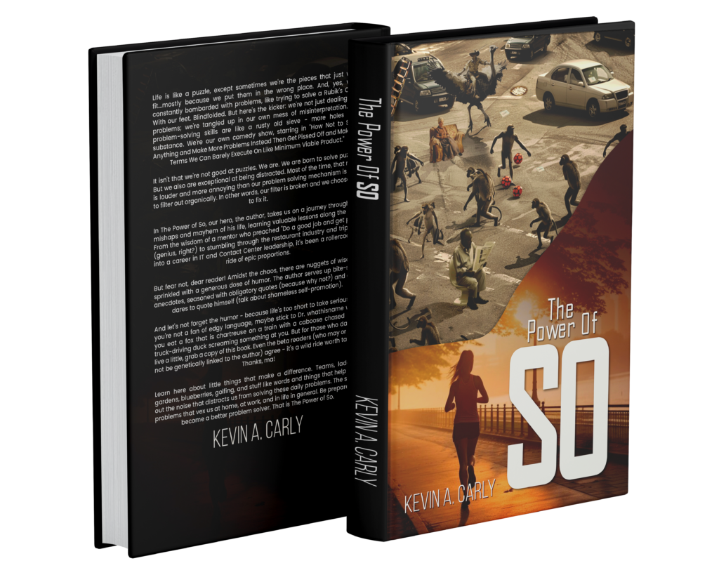 In The Power Of So, Kev narrates a series of anecdotes rooted in the concept of the power of a single word. The narrative moves through Kev’s experiences as a teen, his time as a restaurant manager, his professional life in the tech world, and as a parent. He shares mischievous tales of posing with his friend as a radio personality and basketball player and as a leader of teams and departments. Kev tells endearing, fun, and shocking stories from his long career in IT and Contact Centers leadership. He uses a charming layer, some humor, and a bit of cynicism wrought from crazy corporate battles to deliver these tidbits.
