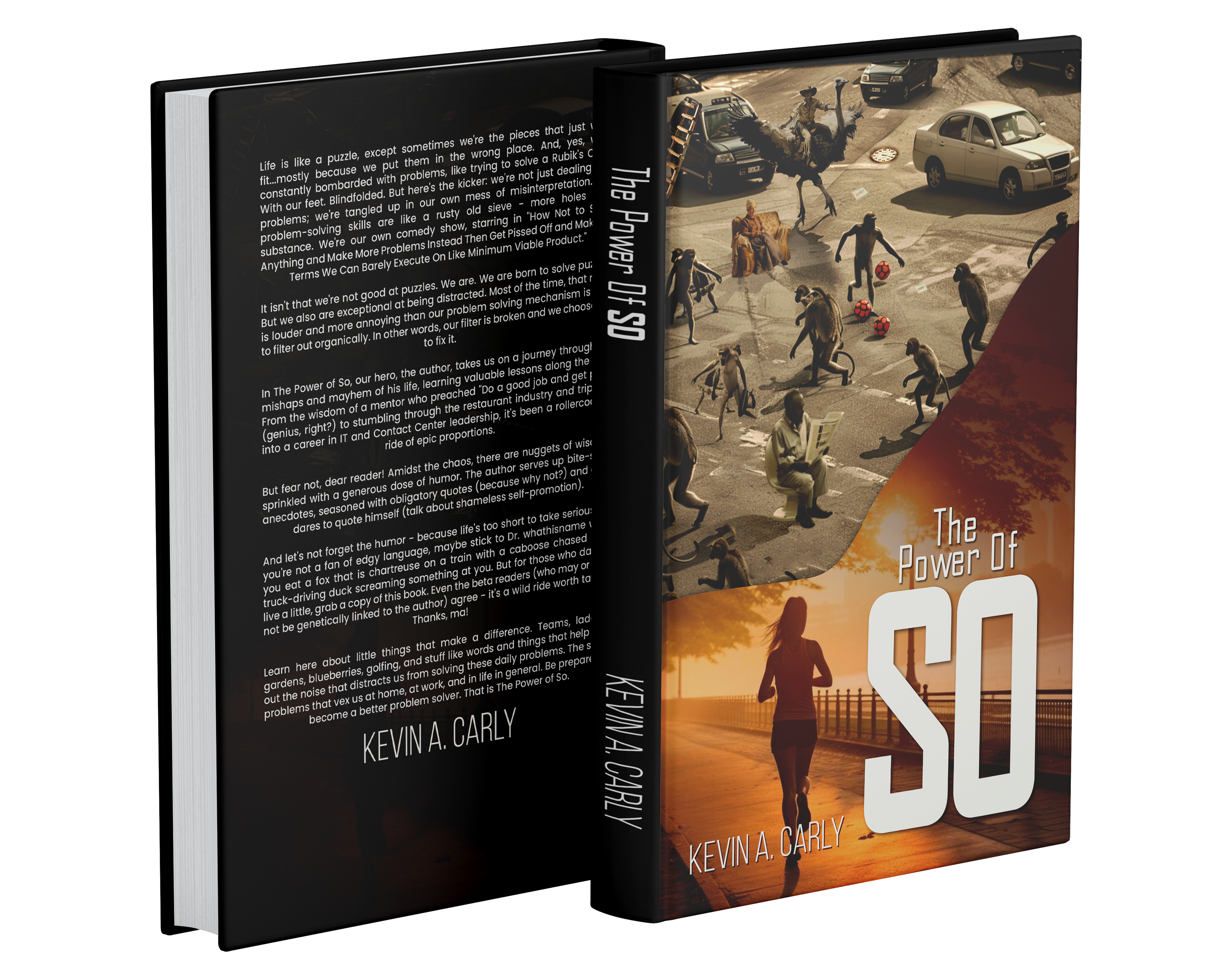 In The Power Of So, Kev narrates a series of anecdotes rooted in the concept of the power of a single word. The narrative moves through Kev’s experiences as a teen, his time as a restaurant manager, his professional life in the tech world, and as a parent. He shares mischievous tales of posing with his friend as a radio personality and basketball player. Kev tells shocking stories from his long career in IT and Contact Centers leadership. He uses a charming layer, some humor, and a bit of cynicism wrought from crazy corporate battles to deliver these tidbits.
